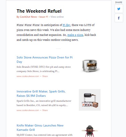 Pizza! Pizza! Pizza! In anticipation of Pi day, there was LOTS of pizza oven news this week. We also had some more industry consolidation and market expansion. So, make a pizza, kick back and catch-up on this weeks outdoor cooking news.